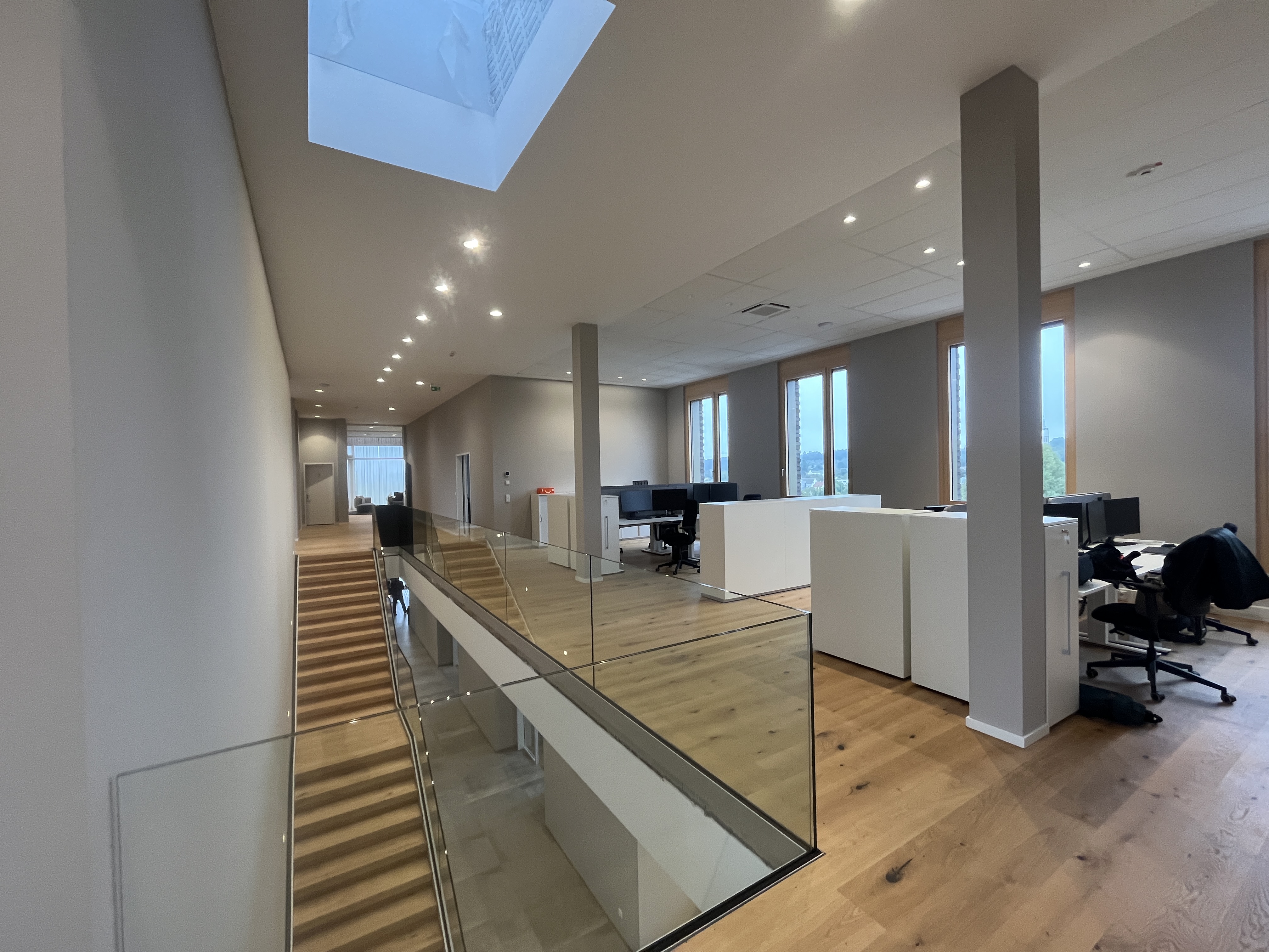 Die weite Öffnung in Richtung Süden ermöglicht lichtdurchflutete Büros, einen hellen Showroom und den Fluss positiver Energie bis weit ins Gebäudeinnere.